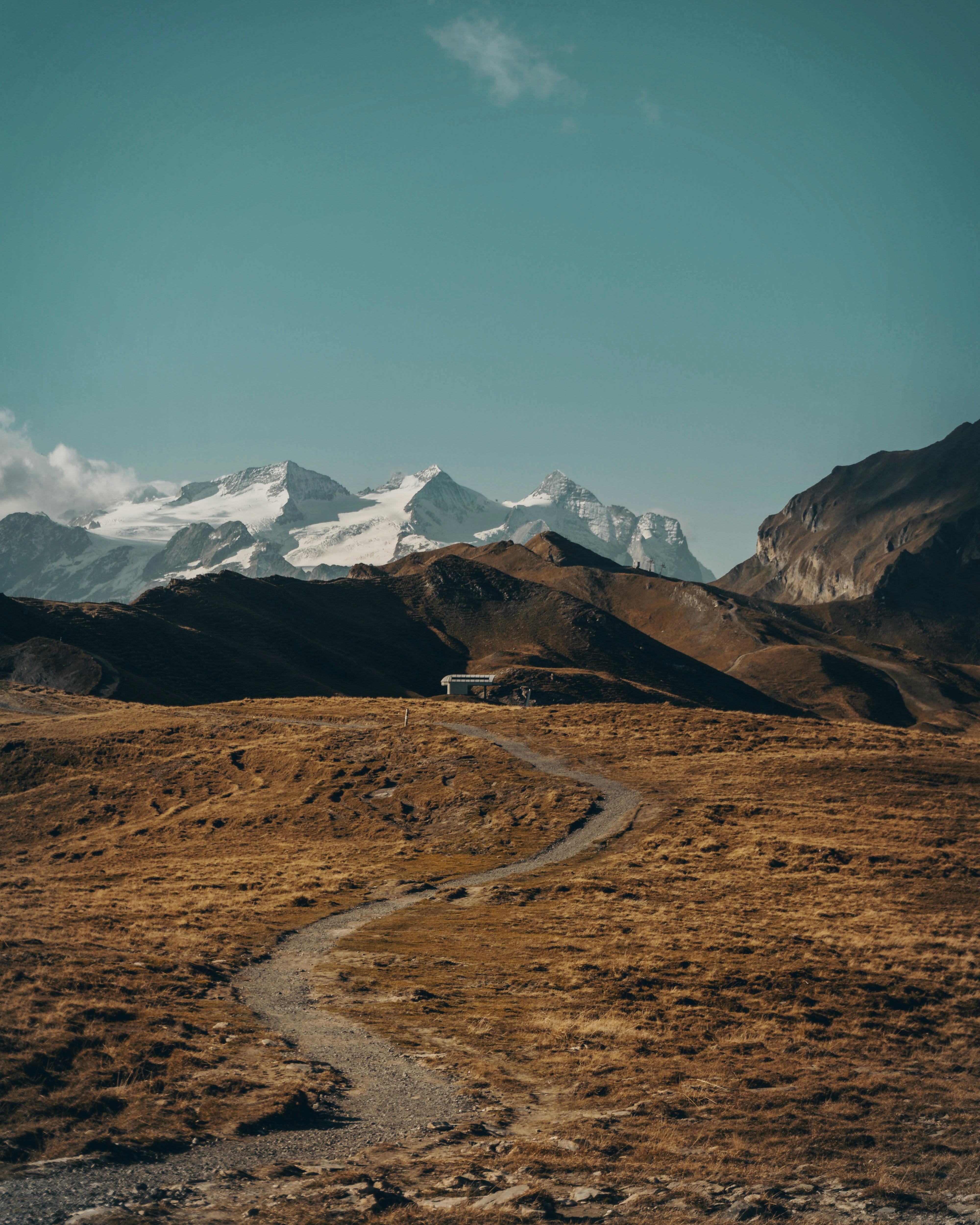 dirt road between open field with dirt mountain