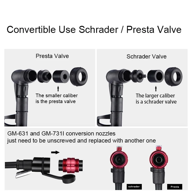 Tire Inflator Schrader Presta Valve oro bike pump
