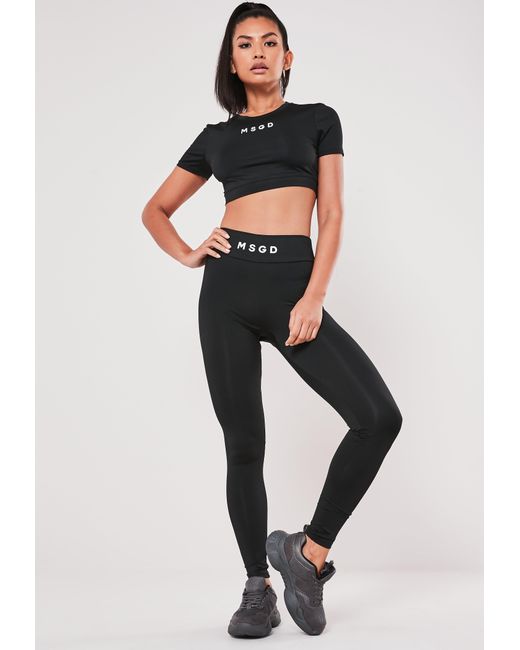 Msgd Full Length Gym Leggings in Black full length gym leggings
