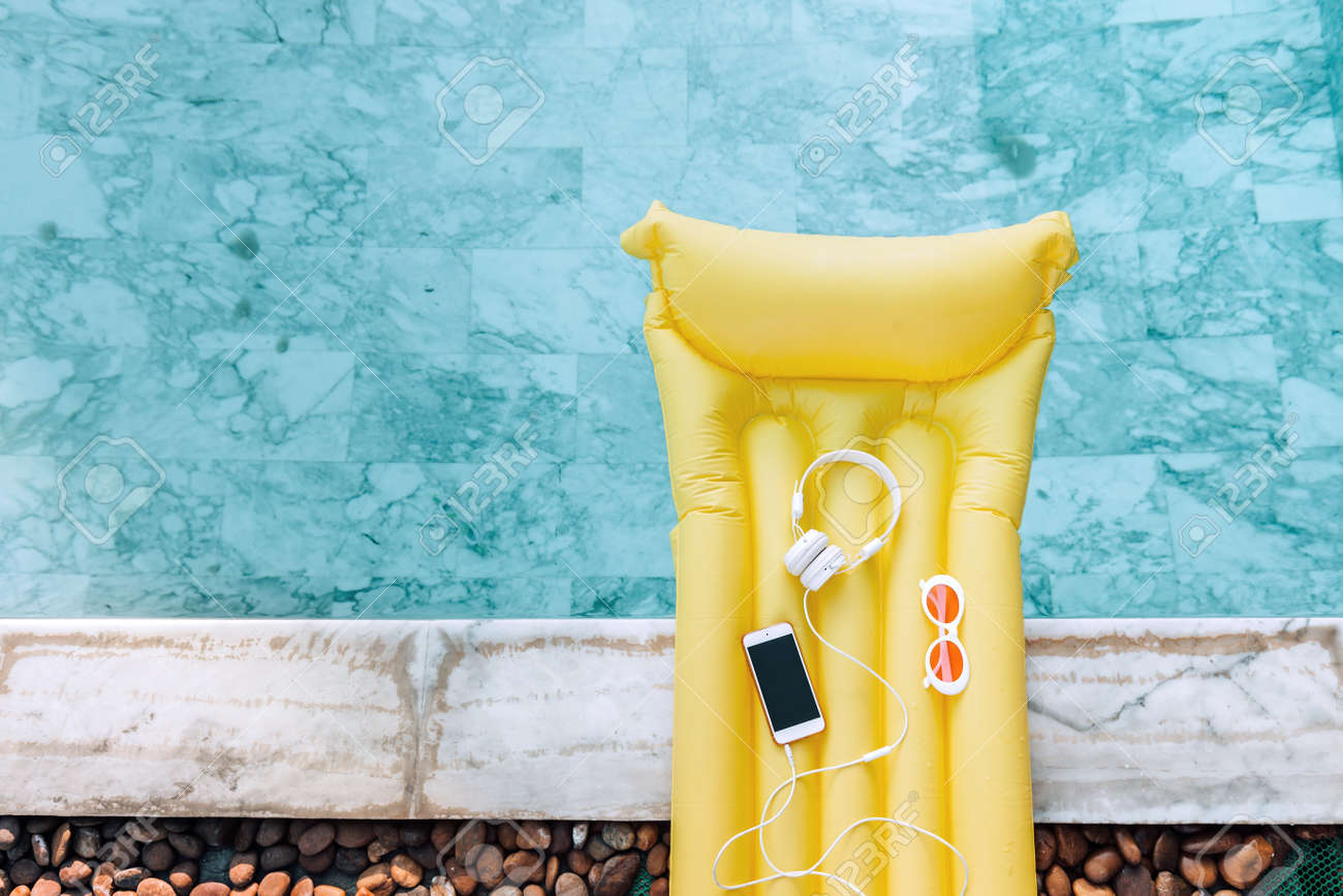 Yellow Pool Float In.. Stock Photo yellow pool floats