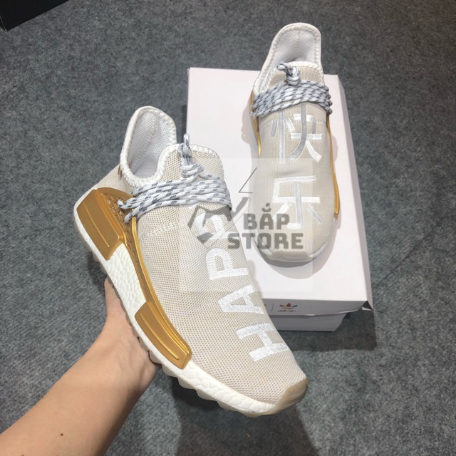 adidas Pharrell NMD HU China Pack Happy white and gold human race