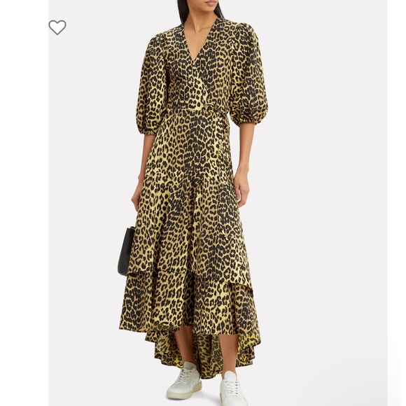 Leopard Print Wrap Dress ganni printed cotton wrap dress