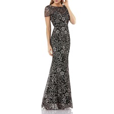 JS Collections Womens Black Illusion js collections formal gowns