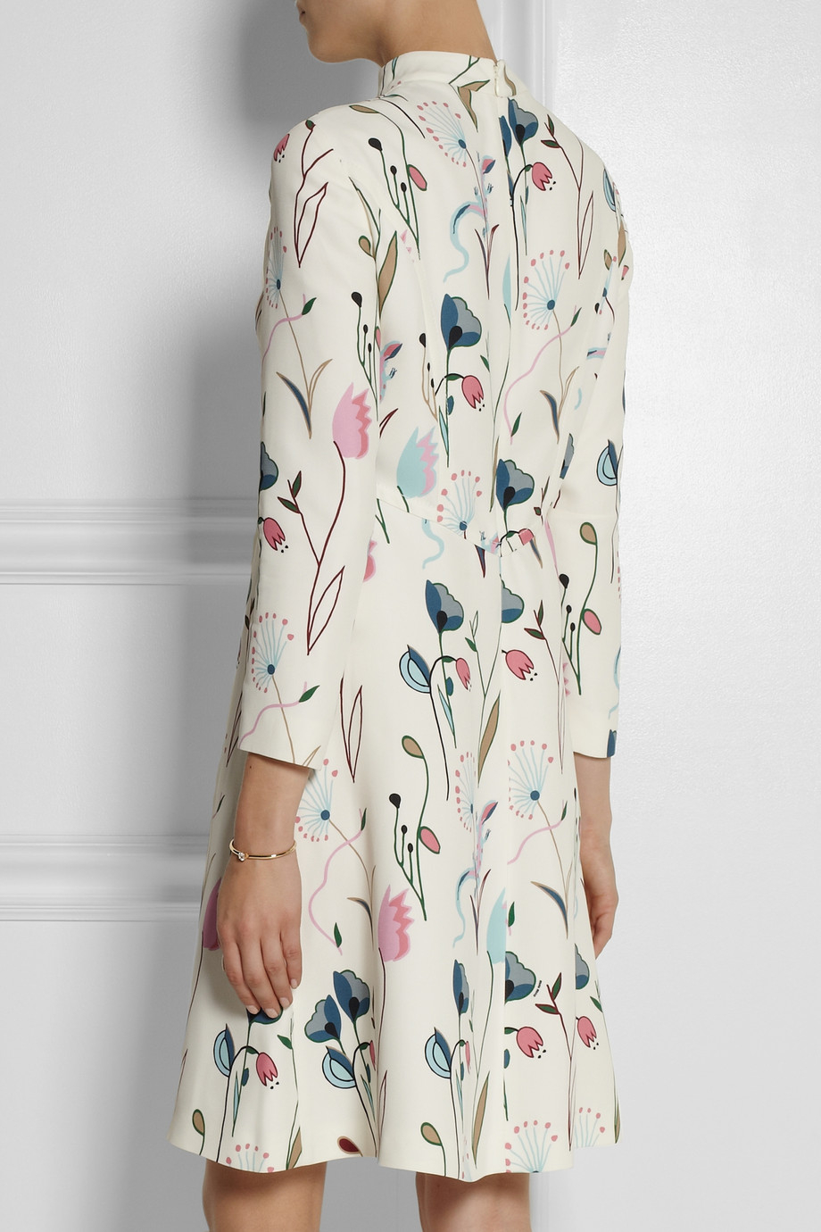 GANNI Goldstone floral print crepe white printed crepe dress