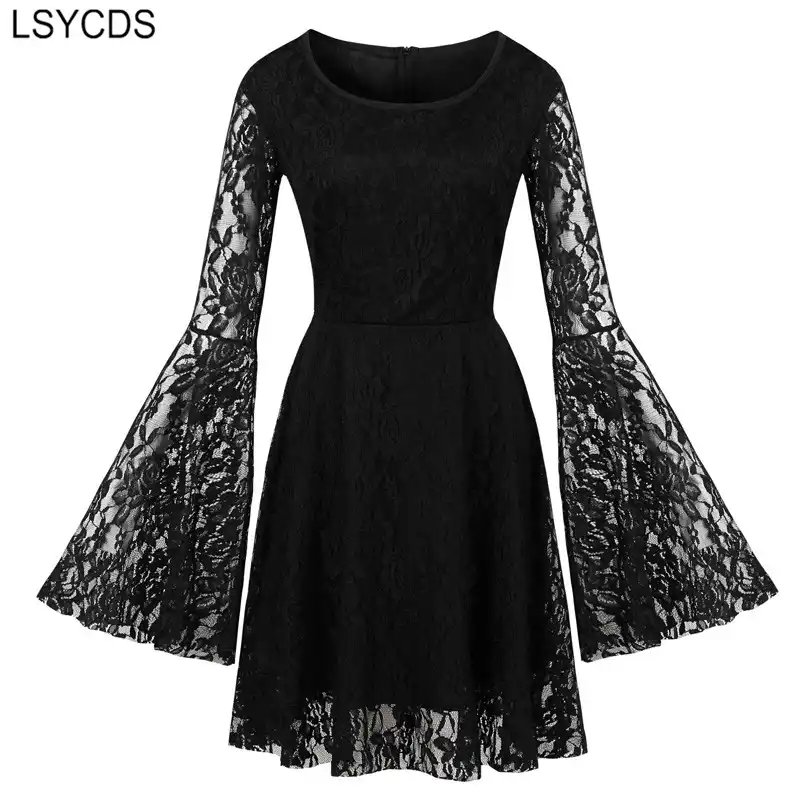LSYCDS 2020 New Solid Black Dresses solid black dress with sleeves