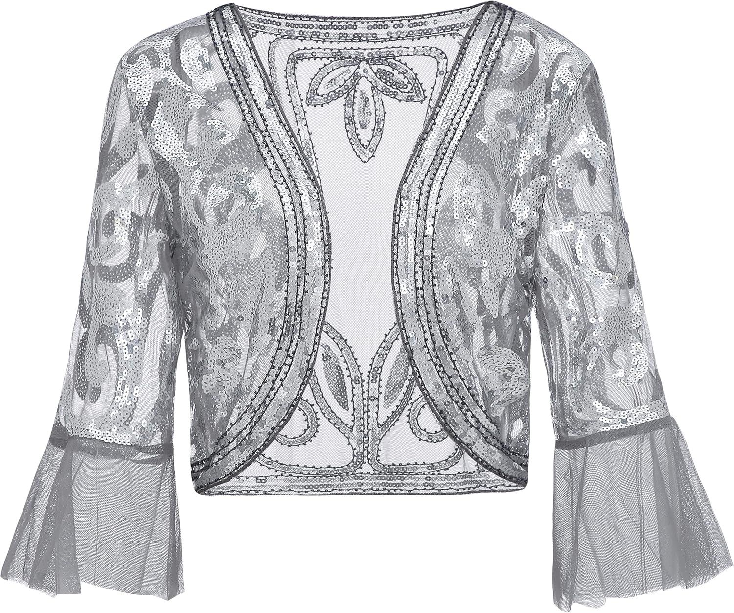 Ladies Sequin Chiffon Long Sleeve Top sparkly shrug cardigan