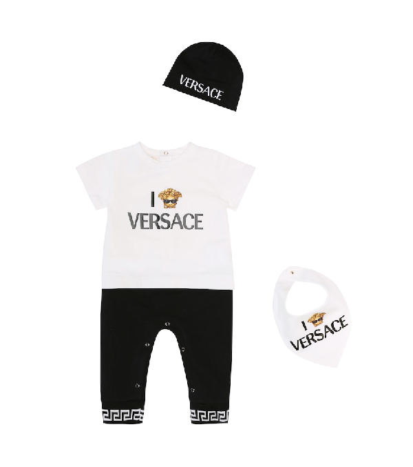 Versace Baby Onesie, Bib And Hat Set In versace baby onesie