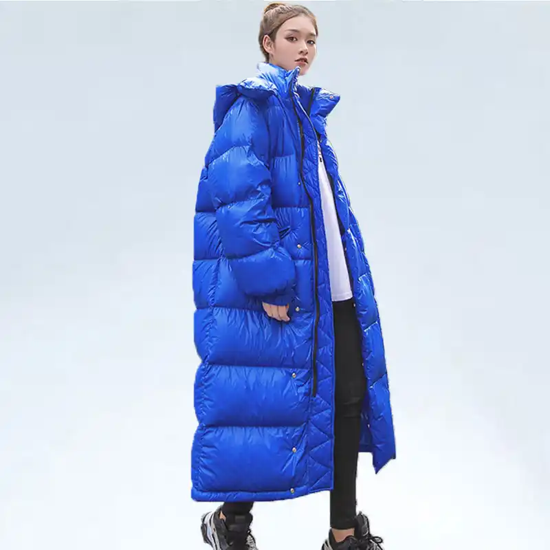 Shiny Winter Jacket Women X Long Hooded plus size shiny puffer coat