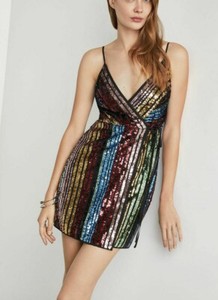 $298 NWT BCBGMAXAZRIA Sz8 STRIPED black spaghetti strap wrap dress