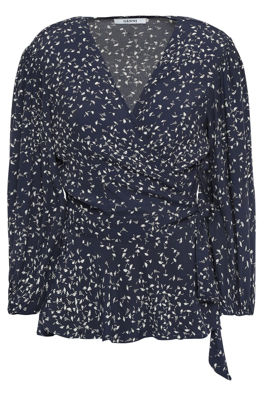 ganni barra crepe wrap blouse