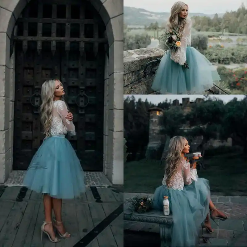 2018 White and Mint Lace Two Pieces trendy gowns 2018