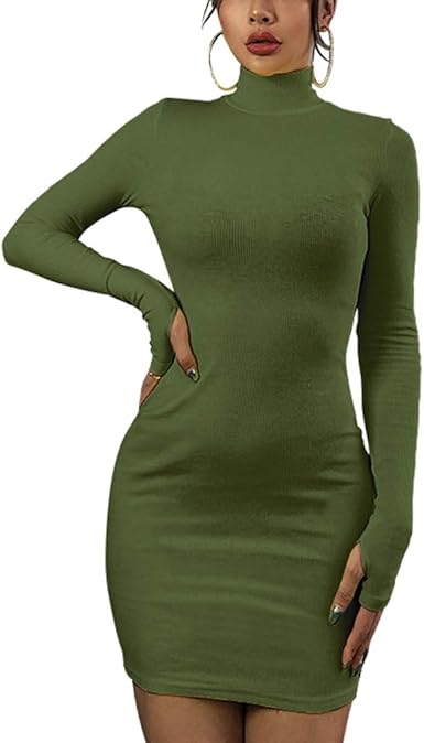 Susupeng Women Mock Neck Long Sleeve thumb hole bodycon dress