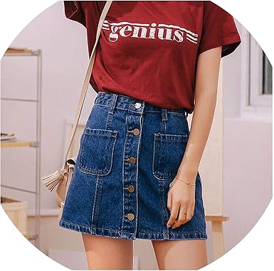 Single Button Pockets Blue Jean Skirt blue jean skirts amazon