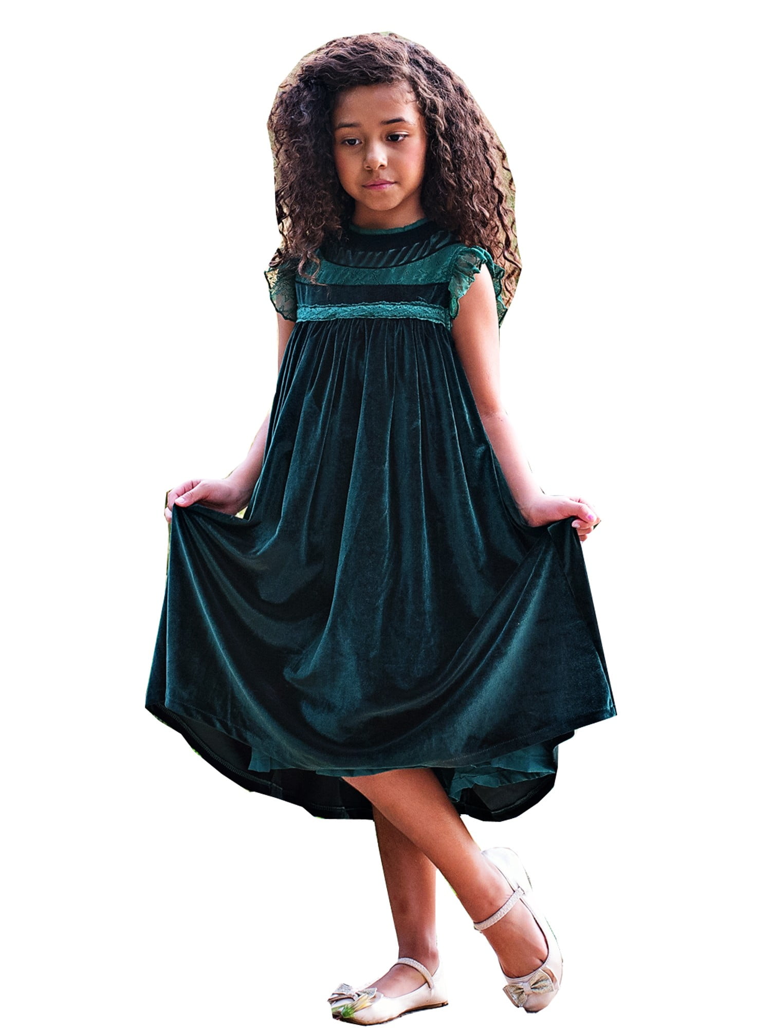 Little Girl's Green Velvet Flutter green velvet dress girl