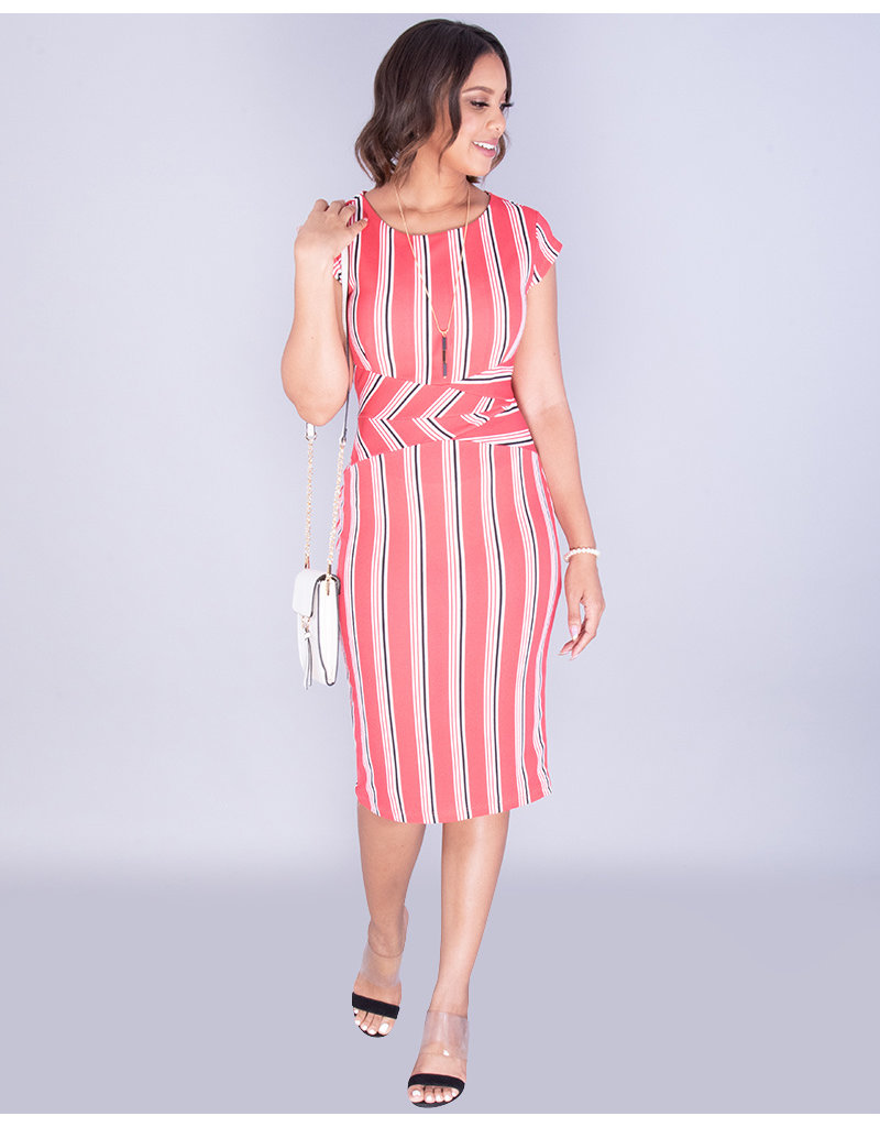 XIMENA- Striped Bodycon Dress pink striped bodycon dress