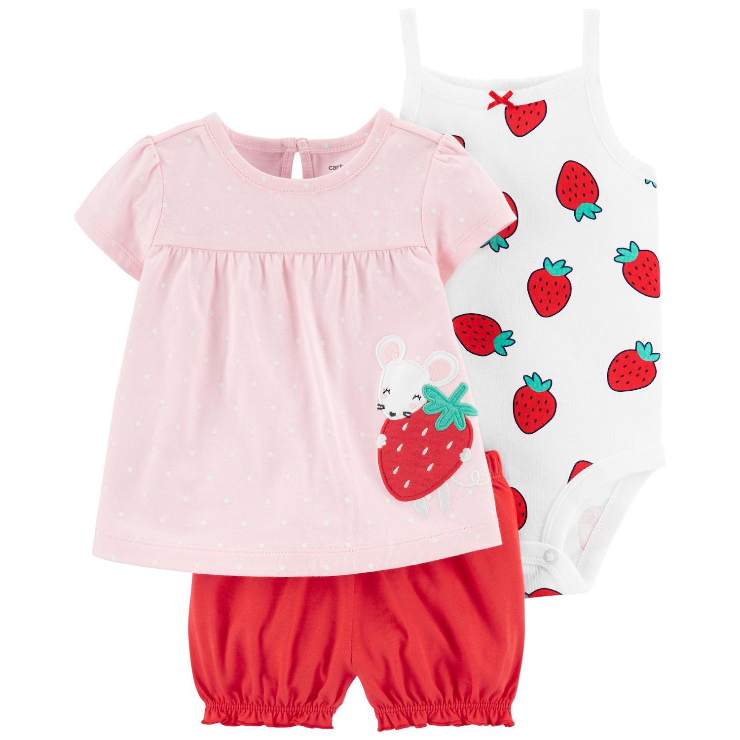 Baby Girl Carter's 3-Piece Strawberry shorts and top set for baby girl