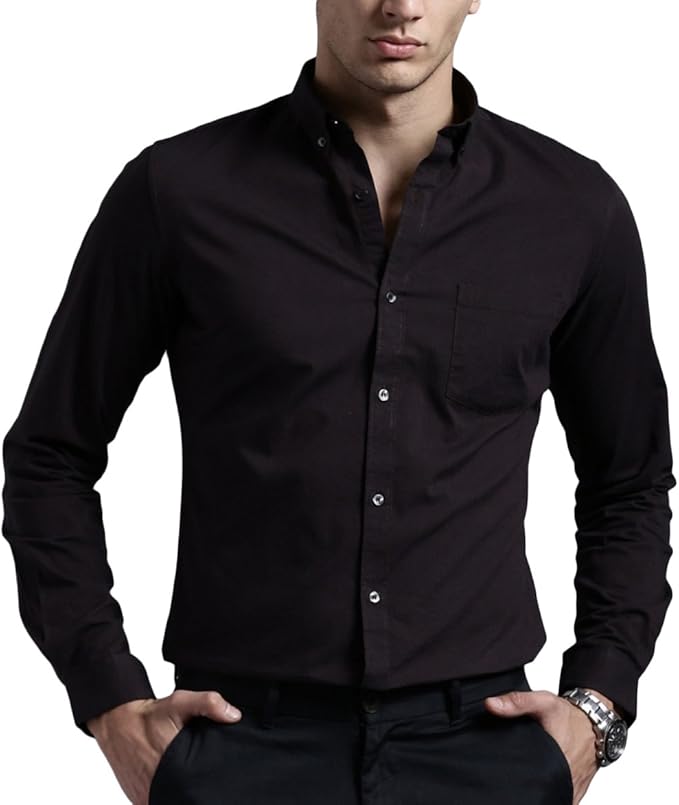 Full Sleeves Button Down Cotton Shirt black shirt casual combination
