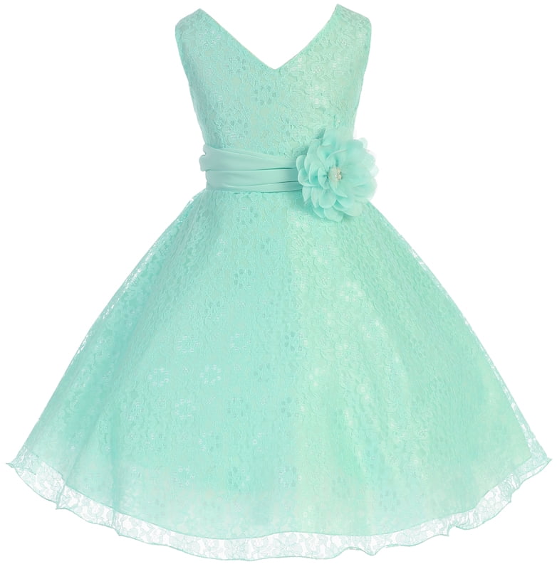 Little Girl V Neck Lace Overlay Chiffon girl dresses size 16 18