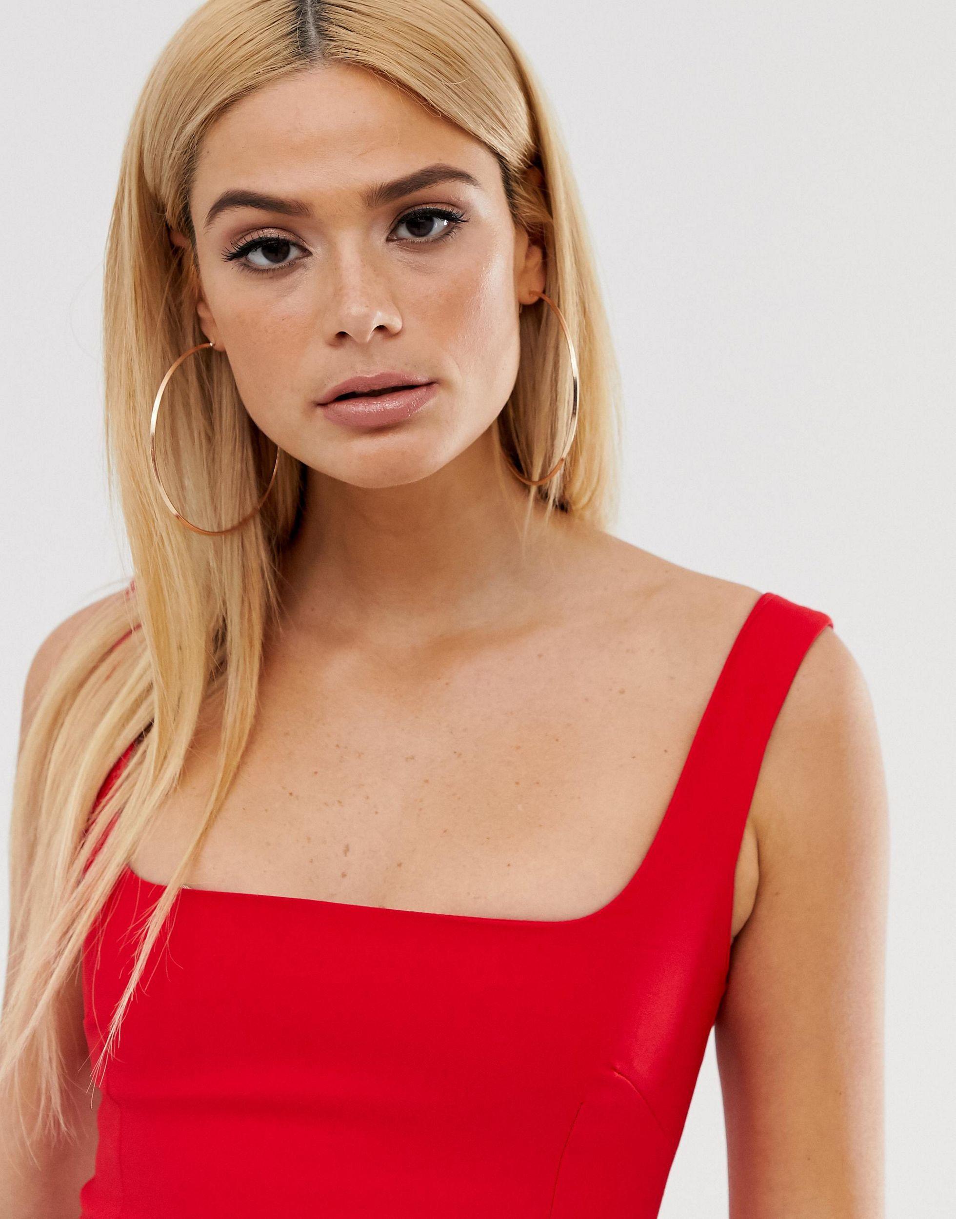 Vesper Tall square neck pencil dress in vesper square neck pencil dress in red