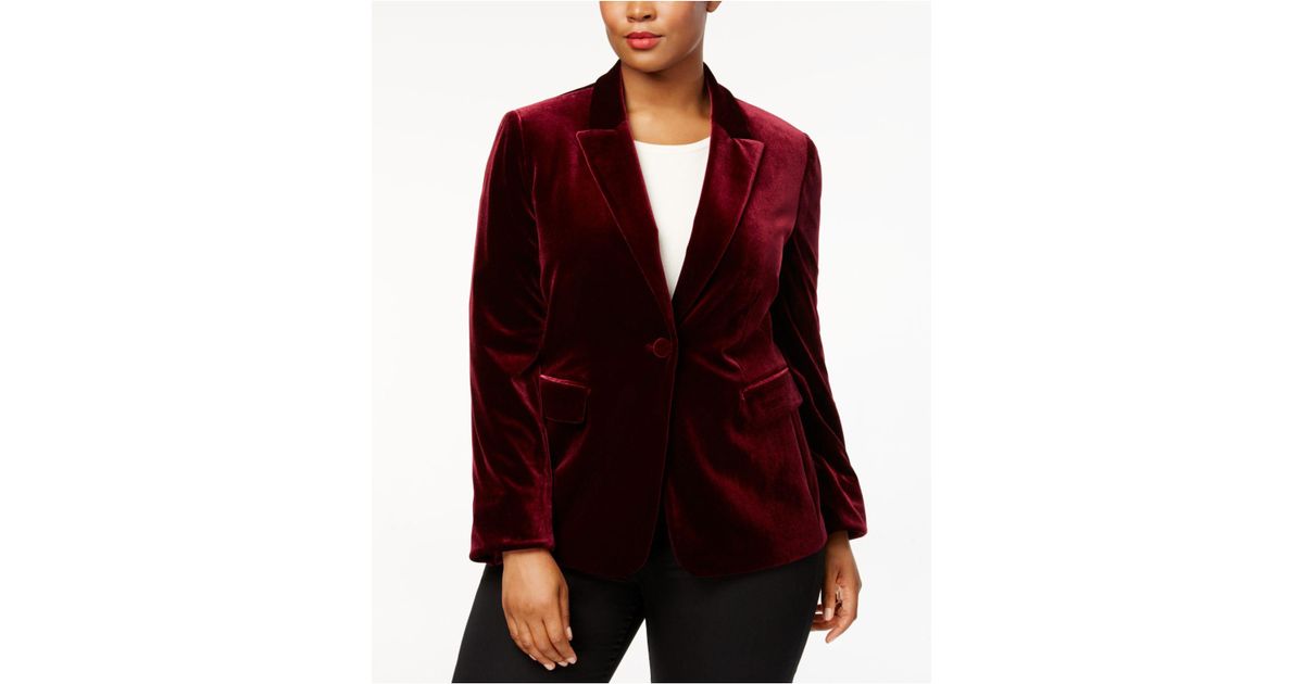 Tahari Plus Size One-button Velvet long velvet coat plus size