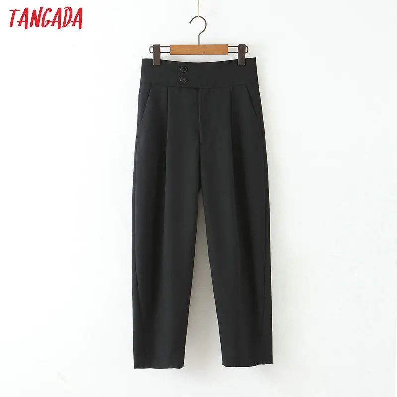 Tangada Women Fashion Basic Black Suit female work trousers