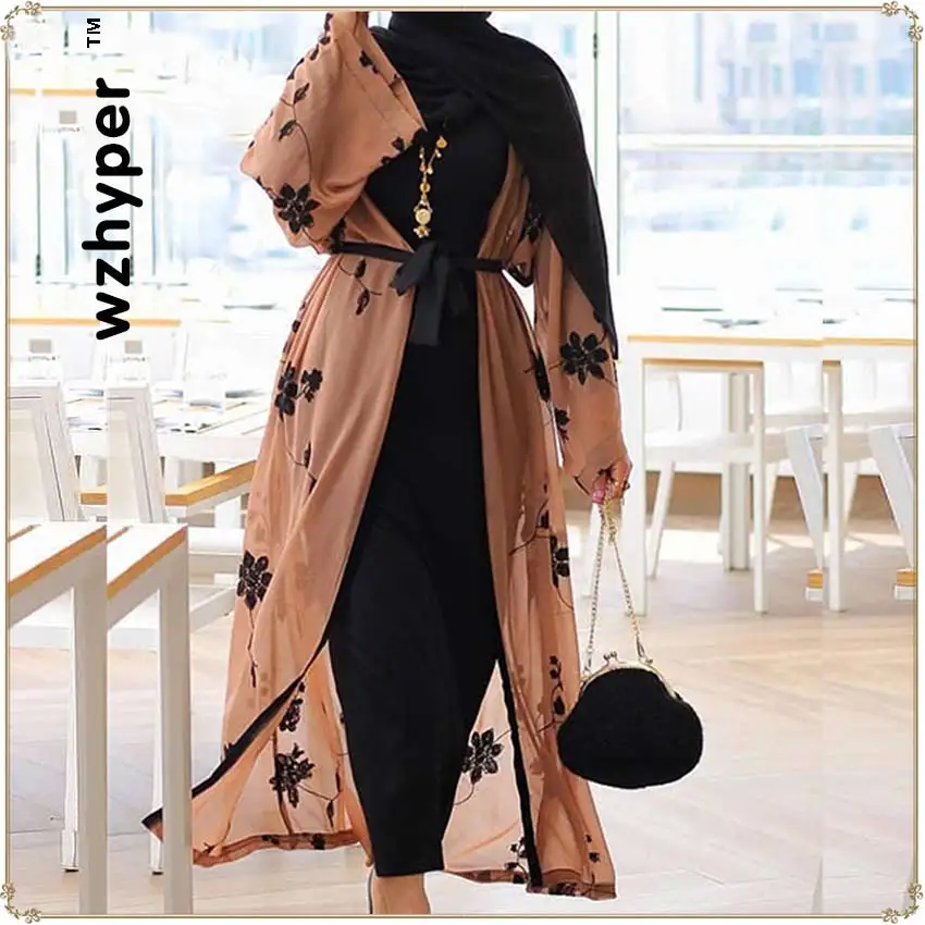 Elegant Muslim Print Abaya Cardigan dress dan cardigan