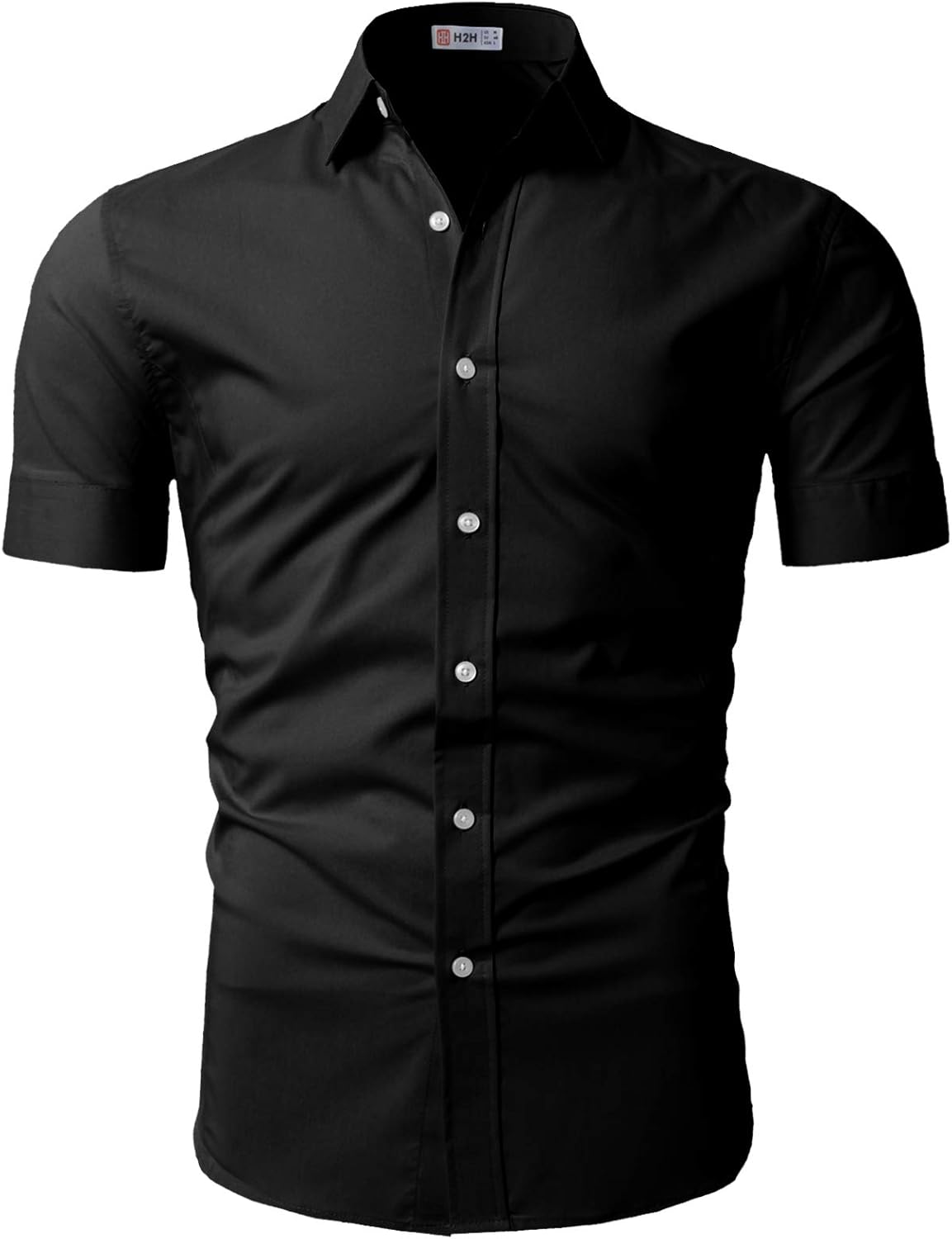 H2H Mens Dress Shirts Slim Fit Short white short sleeve business shirts