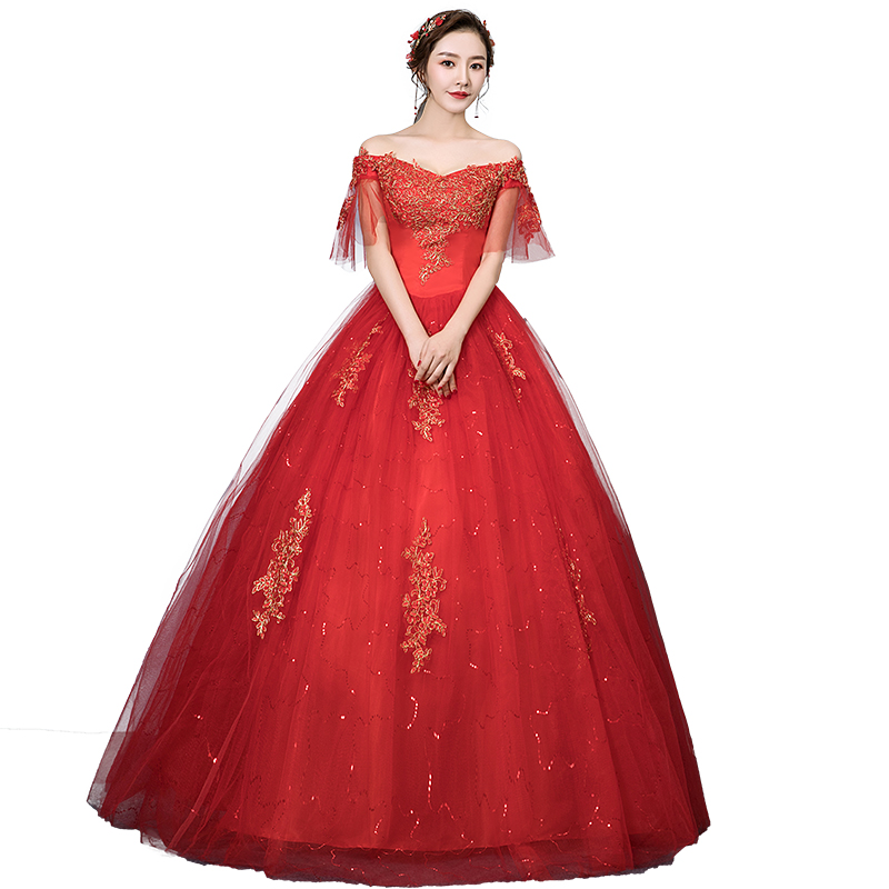 Red Boat Neck Vintage Wedding Dresses cheap flowing dresses
