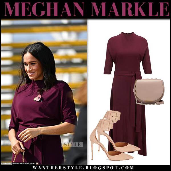 Meghan Markle in burgundy dress maroon dress australia