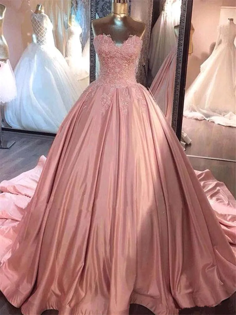 Blush Pink Strapless Ball Gown Prom