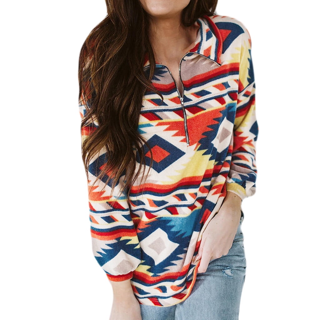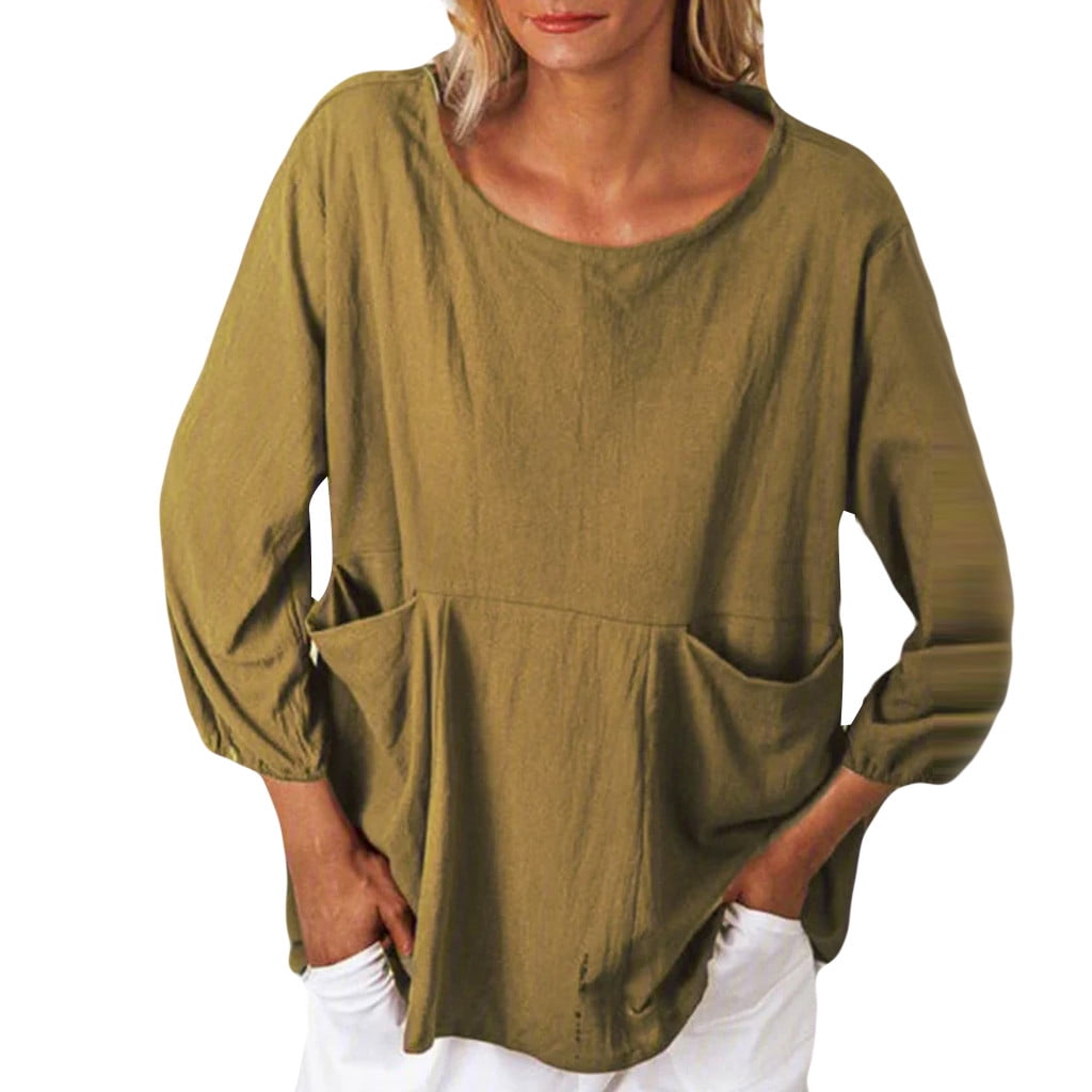 Ouneed Women Cotton O-Neck Printed Long plus size tops uk