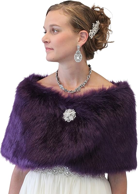Tion Design Women Bridal Fur Wrap One purple faux fur wrap