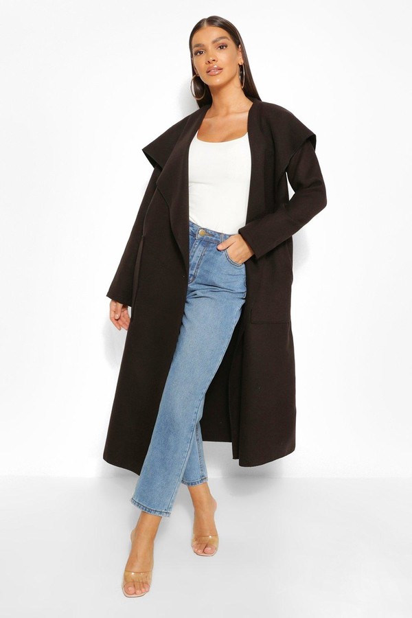 boohoo Petite Utility Button Detail maxi waterfall coat