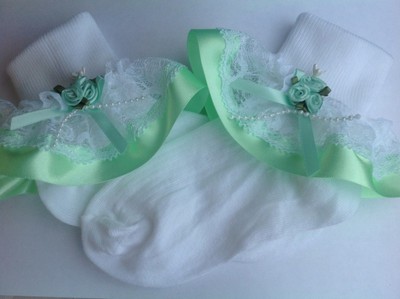 Mint green roses baby/girls frilly mint green baby socks