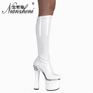 19cm Thigh High Boots Chunky Heels white thigh high boots chunky heel