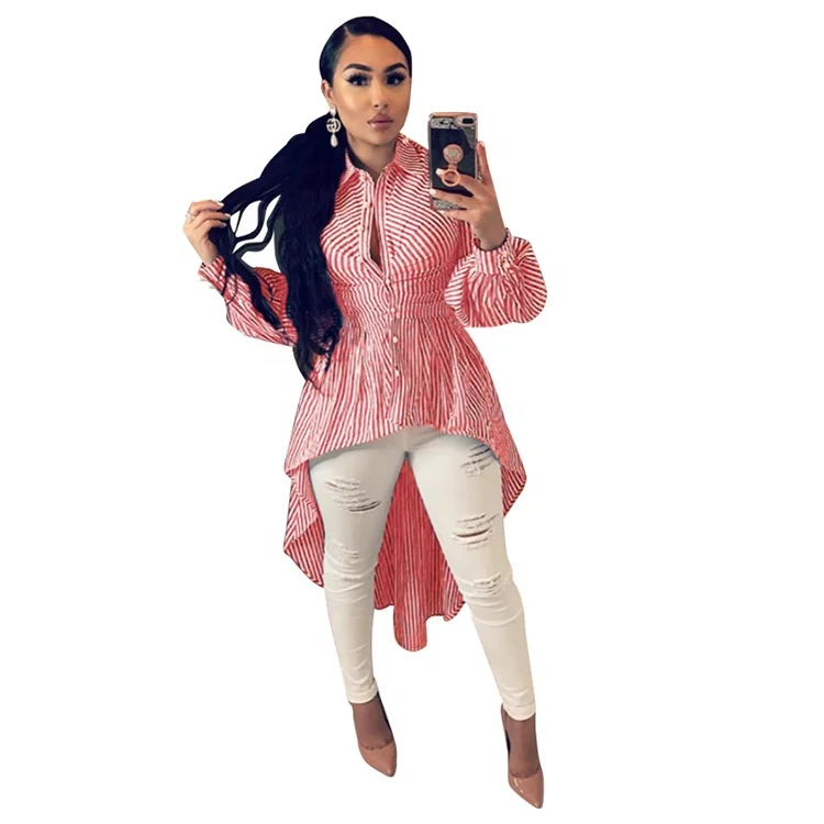 Pink Blue Black Stripe Print Shirt High high low asymmetrical top