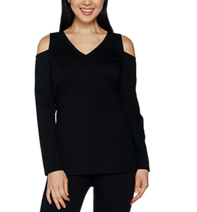 H by Halston VIP Ponte V-neck Cold black v neck cold shoulder top