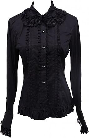 Ainclu Womens Cosplay Black Lace black lace ruffle blouse