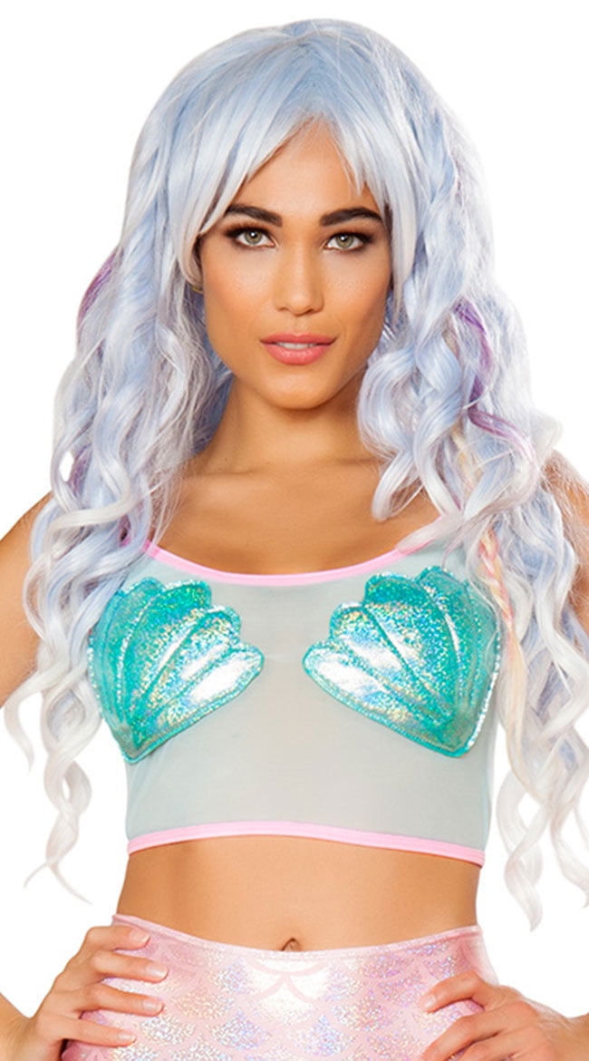 Sexy Women Sheer Mesh Mermaid Sea Shell mermaid mesh top
