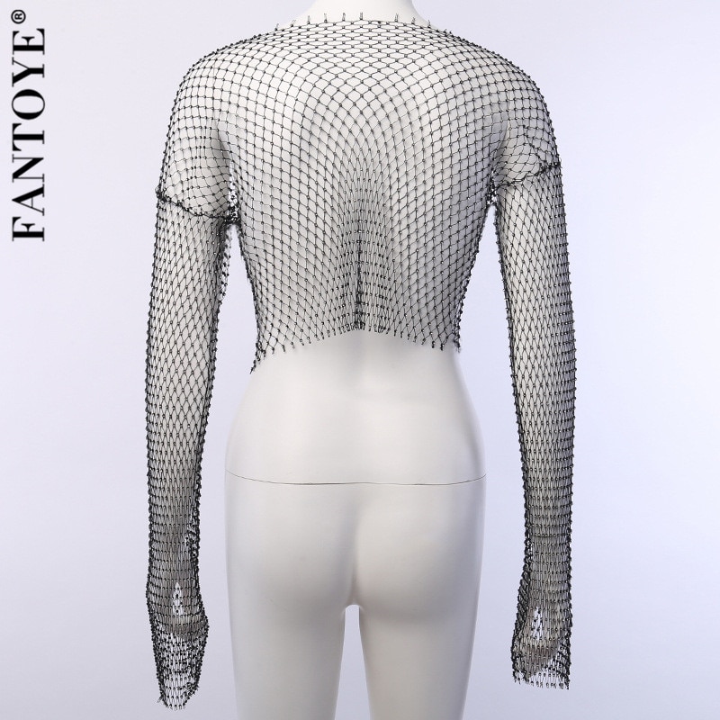 Fantoye See Through Crystal Diamond diamond fishnet top