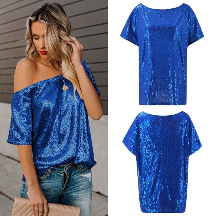 Womens Off One Shoulder Sequined Tops off the shoulder sequin top plus size