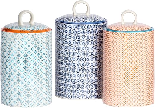 Nicola Spring 3pc Hand-Printed Tea orange kitchen tea coffee sugar canisters