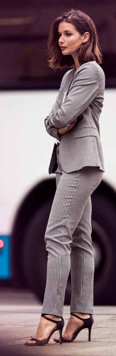 Elegant business attire grey suit with heels for business attire