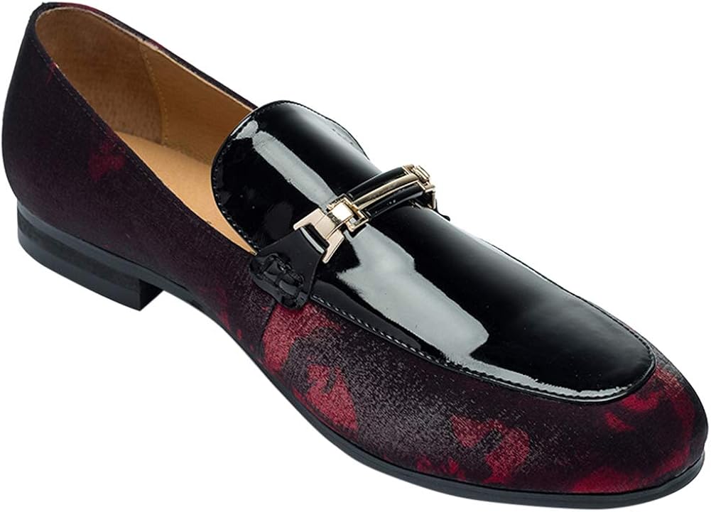 Santimon Mens Penny Loafers Black red patent loafers
