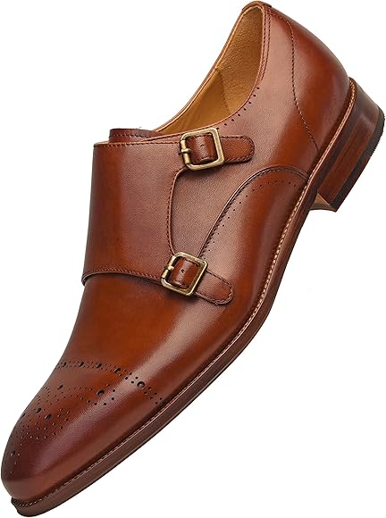 COMOTEK Men's Classic Double Monk Strap tan leather dress shoes