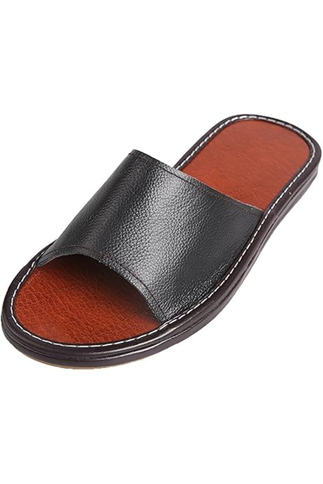 Cattior Mens Solid Summer Leather mens leather slippers amazon