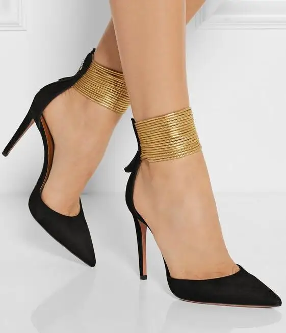 New Designer Black Beige Suede Pointed black heels gold