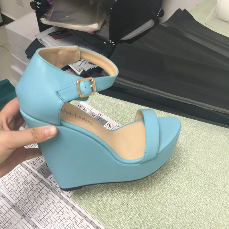 Women Sandals Wedges Shoes Plus Size sky blue heel shoes