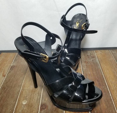 Saint Laurent Tribute 105MM Black Sandals ysl tribute black patent