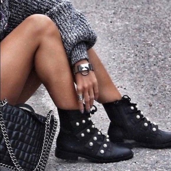 Zara Ankle Boots With Faux Pearls Size zara leather ankle boots with faux pearls
